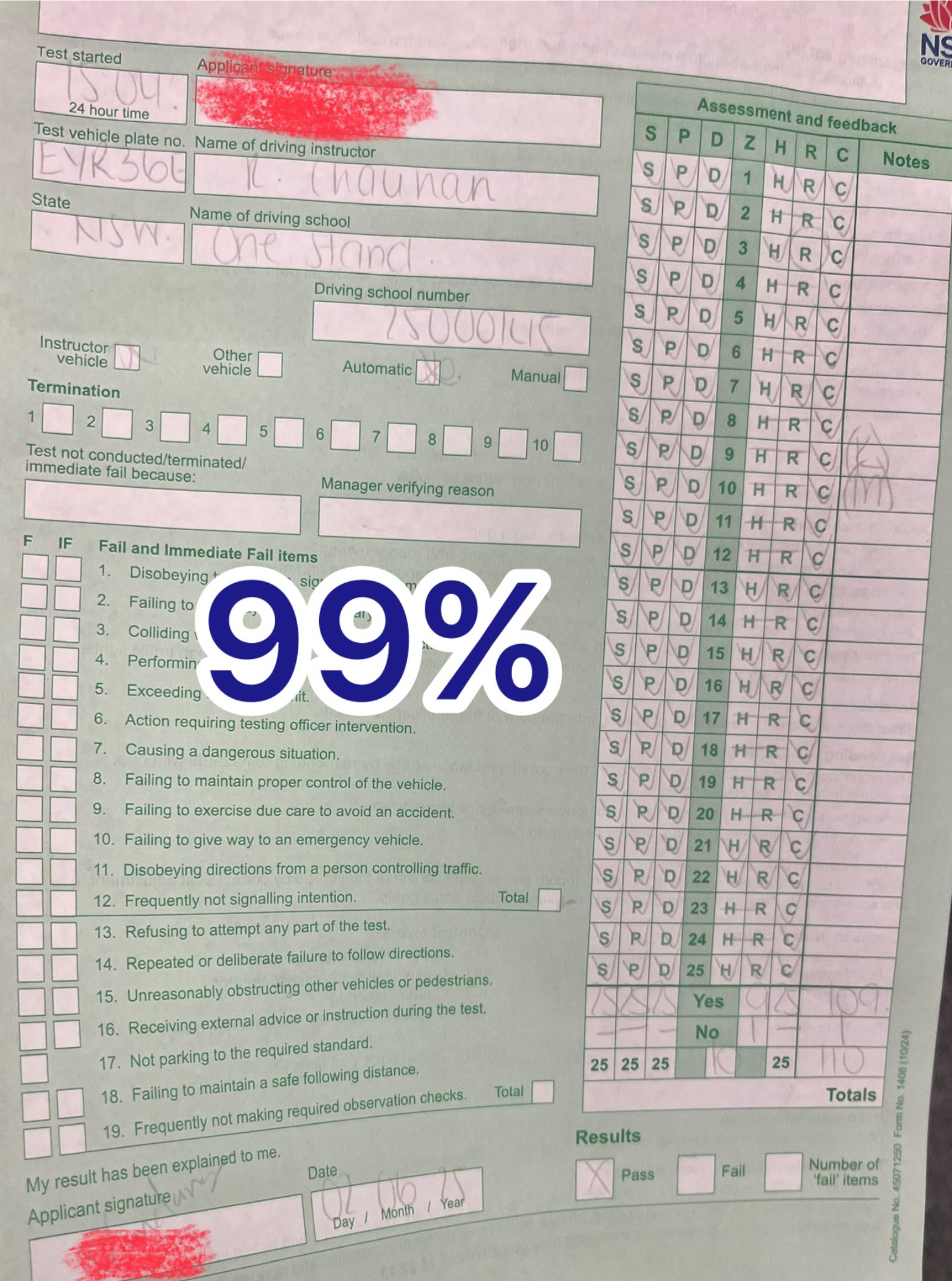 Starts from home 1h early get worm up lesson before test for route & use my car for driving test ( KM radius test CENTRE)